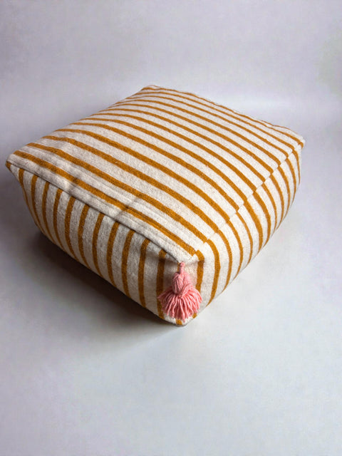 Die Winter Edition setzt auf ein harmonisches Zusammenspiel aus cremefarbenen Naturtönen und farbigen Akzenten. Das charakteristische feine Streifenmuster, wie auf dem Foto zu sehen, verleiht jedem Raum eine moderne, aber dennoch beruhigende Atmosphäre. Weiche Quasten runden das Design liebevoll ab und machen jedes Stück zu einem besonderen Hingucker.